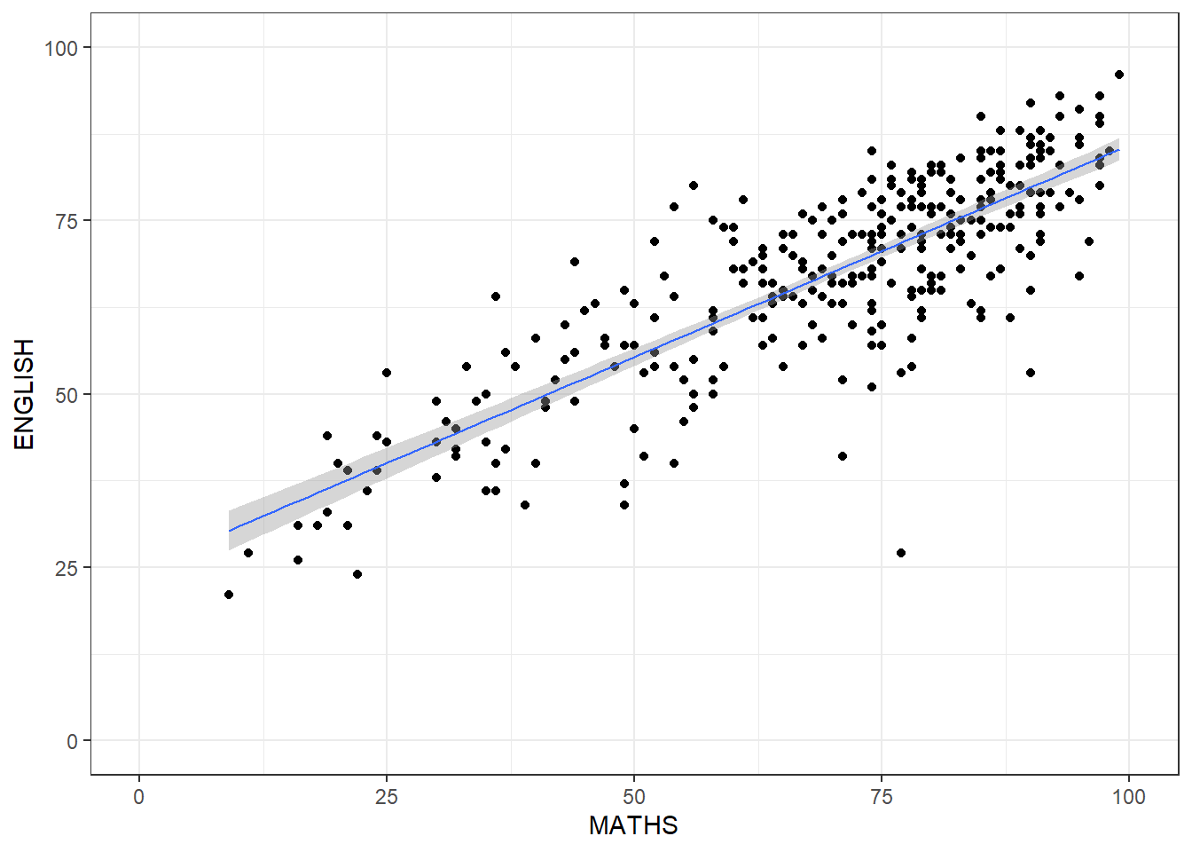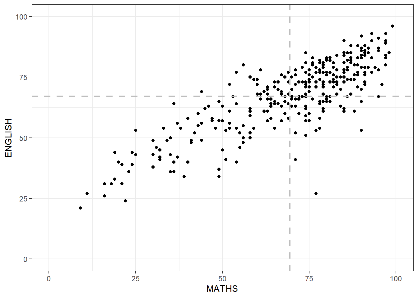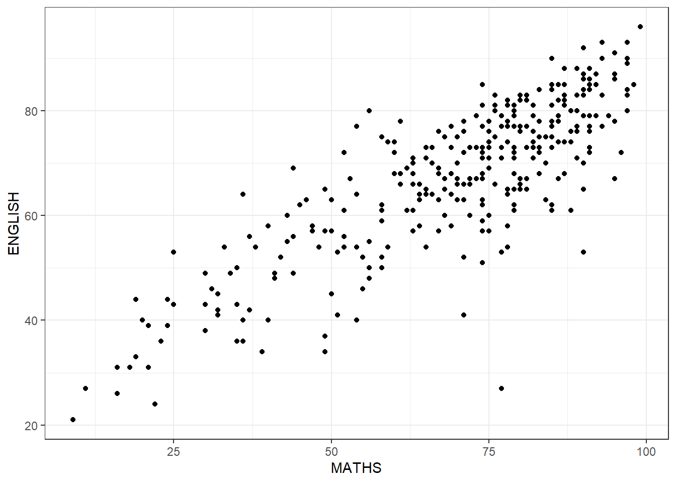 aes(x = MATHS, y = ENGLISH)) +