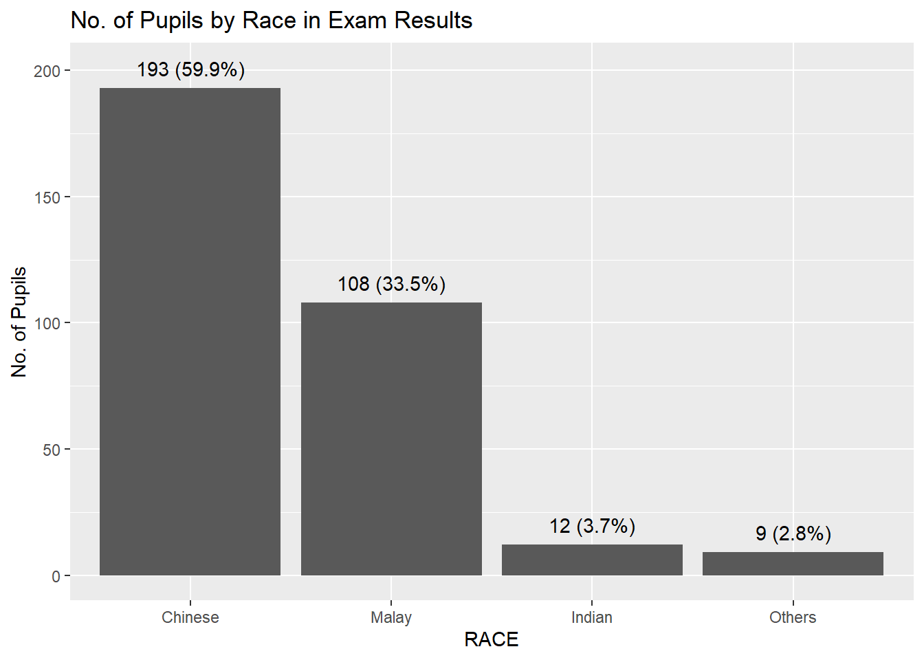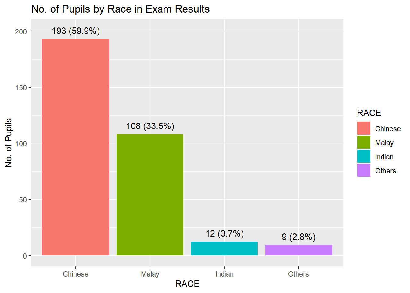 labs(title = "No. of Pupils by Race in Exam Results",