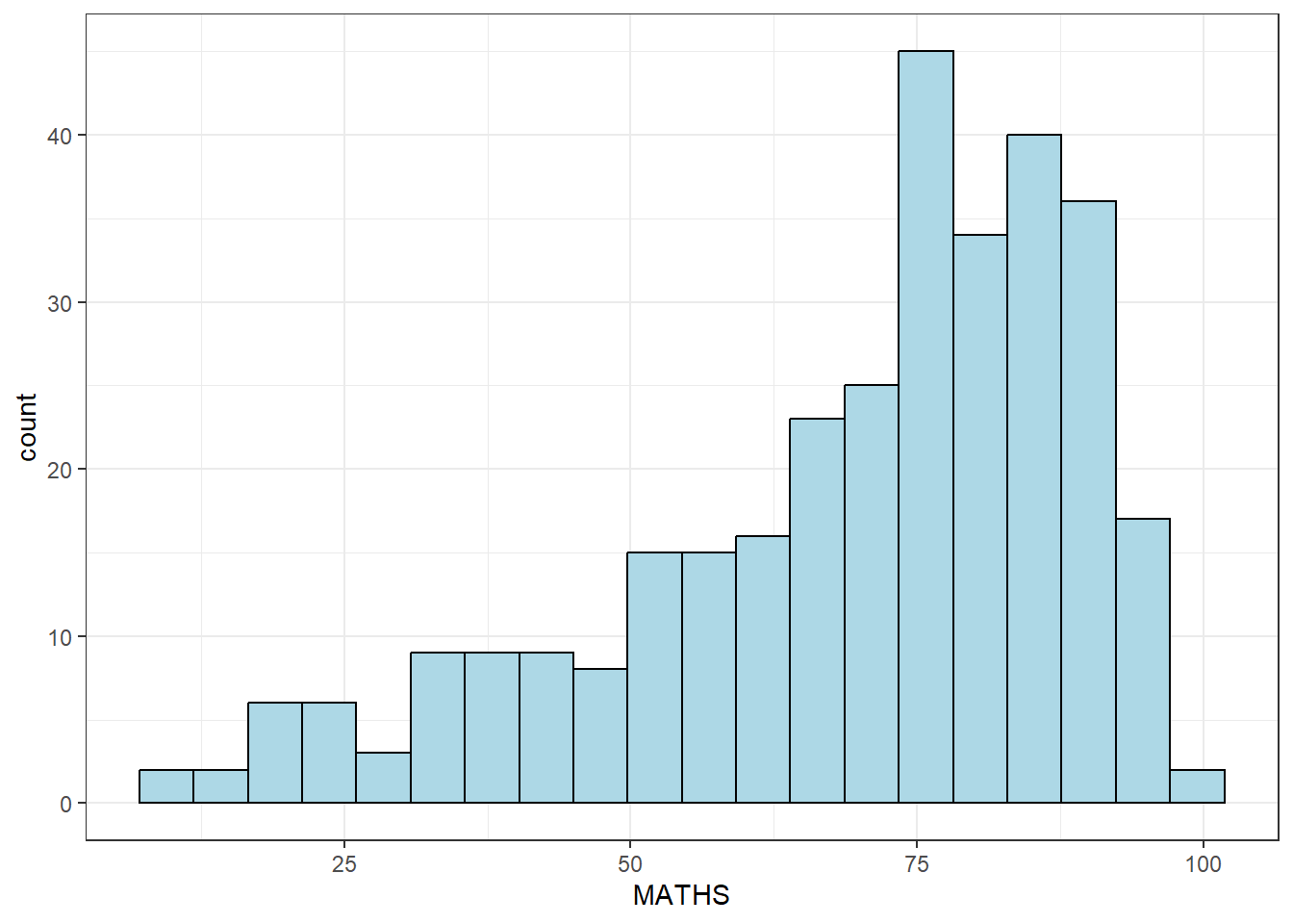 ggplot(data = exam_data, aes(x = MATHS)) +